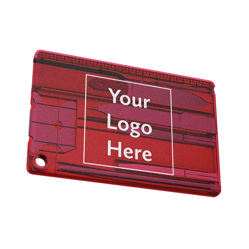 This credit card version of the classic tool is surprisingly packed with 10 functions, from a small knife to scissors a file. All squeezed into a flat little package that you can slip into your wallet or purse. We can offer them for branding - simply add your logo to the front and it will make a very practical gift for your staff or customers.